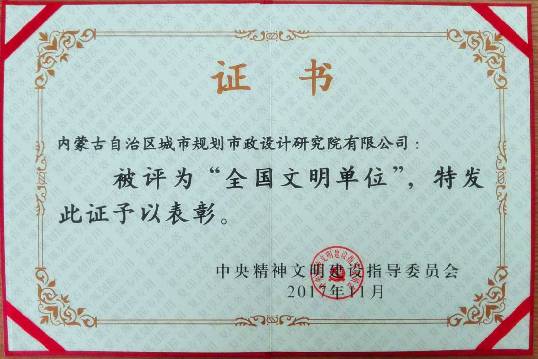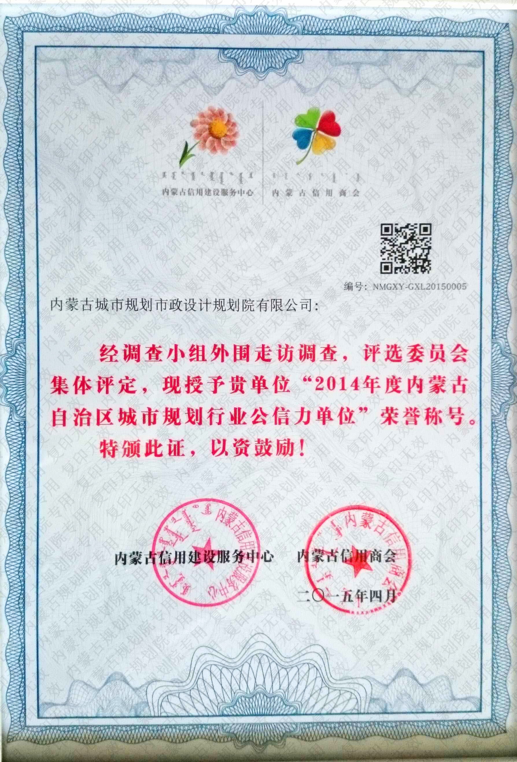 內蒙古自治區(qū)城市規(guī)劃行業(yè)公信力單位