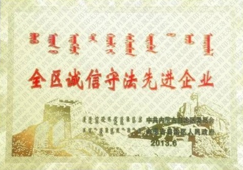 內蒙古自治區(qū)誠信守法先進企業(yè)