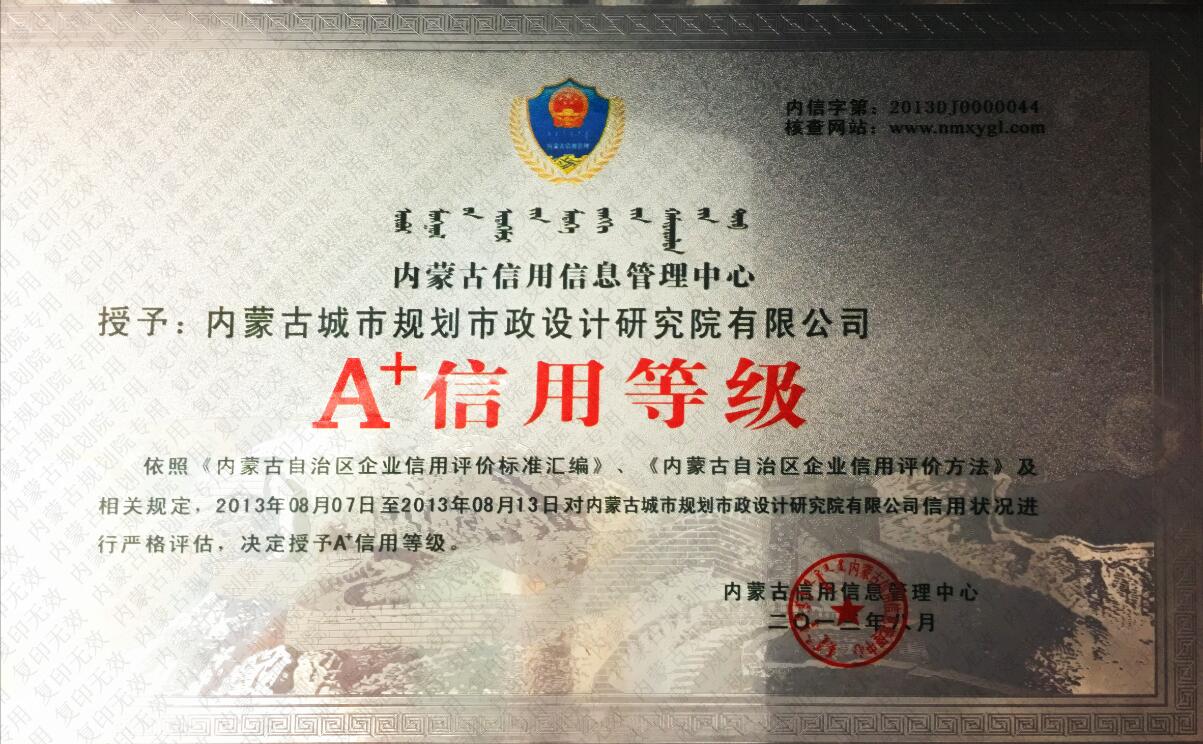 內蒙古自治區(qū)A+信用等級單位