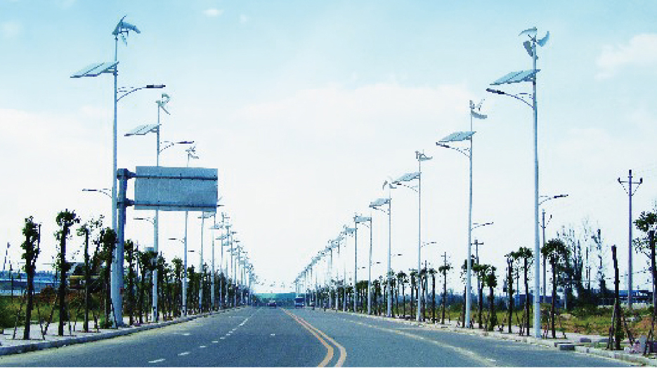 生態(tài)道路長(zhǎng)度為1.6KM,紅線寬度為34M,道路照明選用燈具為風(fēng)光互補(bǔ)LED燈,燈具功率為110W,對(duì)稱布置于道路兩側(cè)。